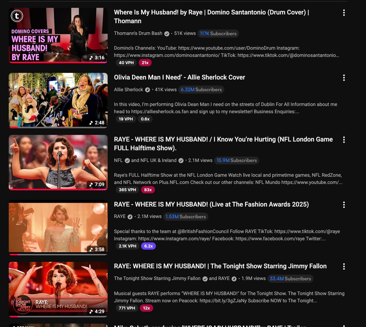 OK, I donât know how I missed that UFO, but Rayeâs live performance of âWhere Is My Husbandâ is absolutely INSANE. EVERY live version. Such musicians, such a performance.