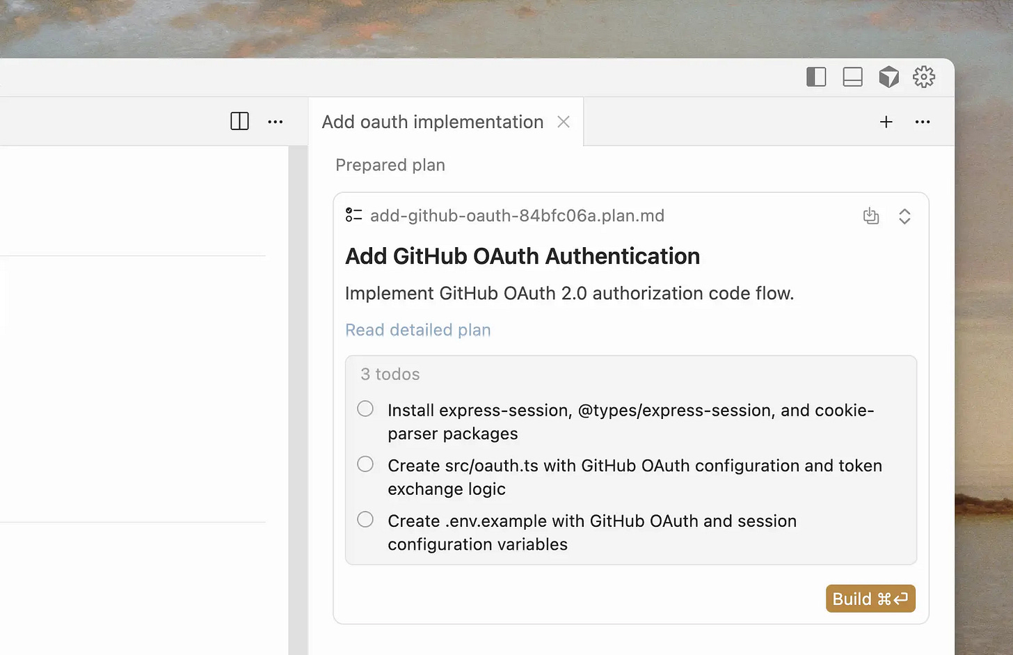 Don't start any coding implementation yet. I'm thinking about Xâask clarifying questions and use @docs to verify what's possible.Now plan mode does roughly that, and the UX within Cursor is nice since I can easily edit the plan and give the green light to build.
