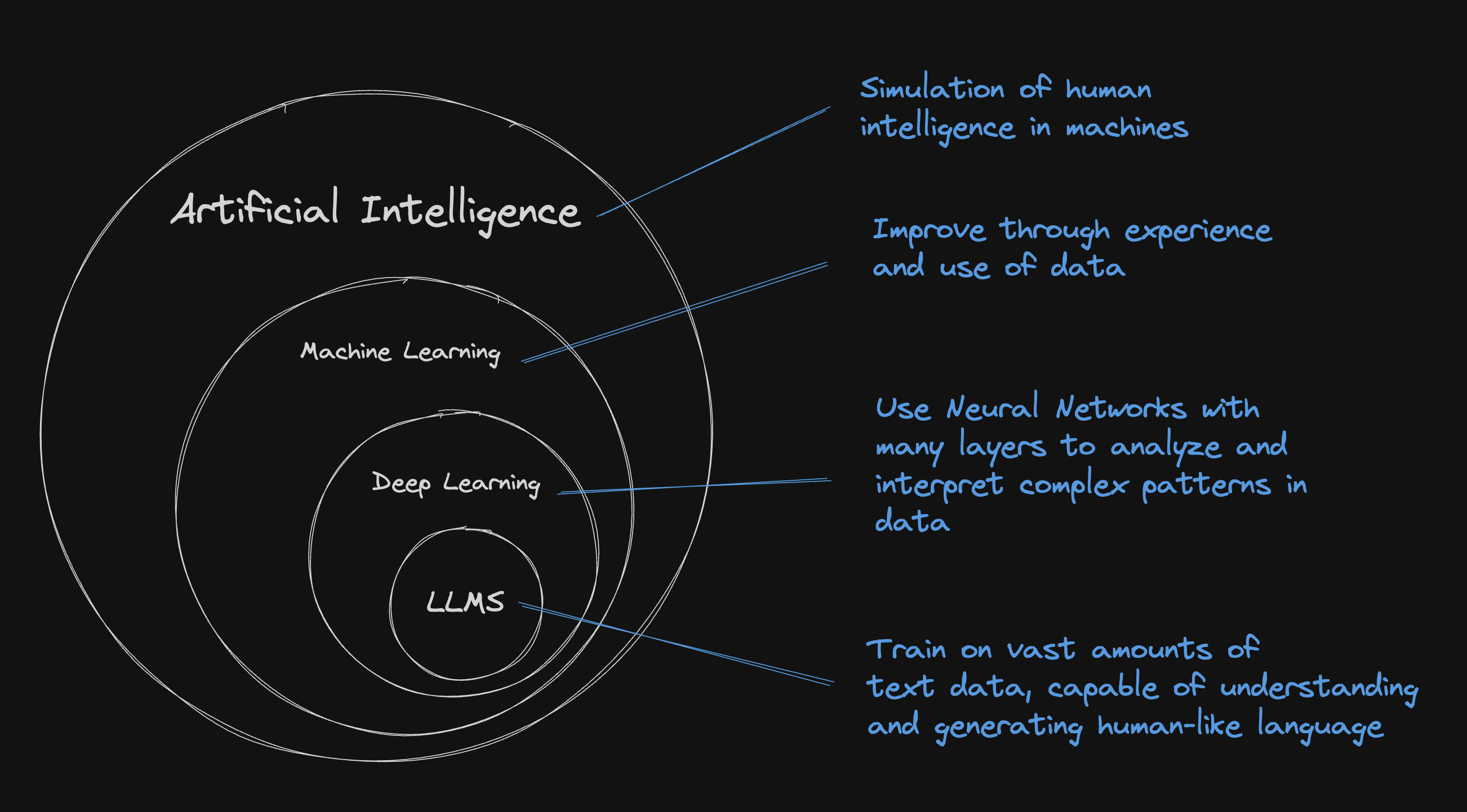 LLMs are machine learning models that are really good at understanding and generating human language.
