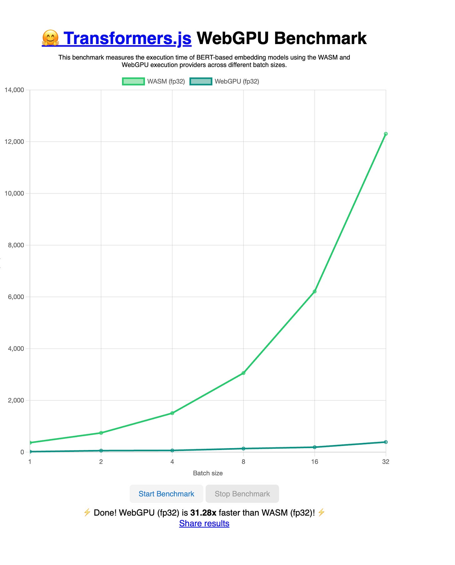 Of course, performance depends heavily on your model and device but on capable GPUs, certain models and tasks have shown significant speedups—often exceeding 10×—compared to earlier WASM-based execution!